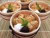 その上に手作りわらびもちをのせて、粒あんと生クリームを