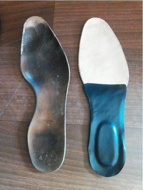 当店では既存の靴をバラバラにして、お客様の平面足型から新たな中底を設計し直し、立体が沿うように足に巻いて組み立てて行きます。