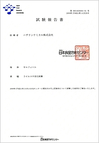 セルフィールの抗ウィルス作用について、その効果の有無を財団法人日本食品分析センターに検査依頼しました。