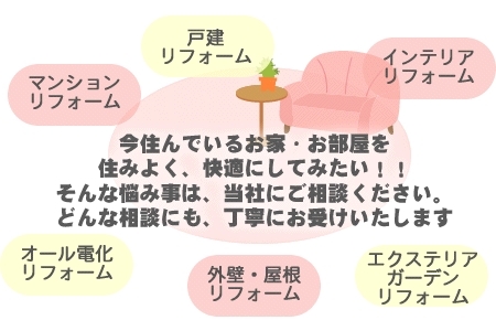 住宅の面積を変えずに、内外の模様替えや、新装をする工事です。